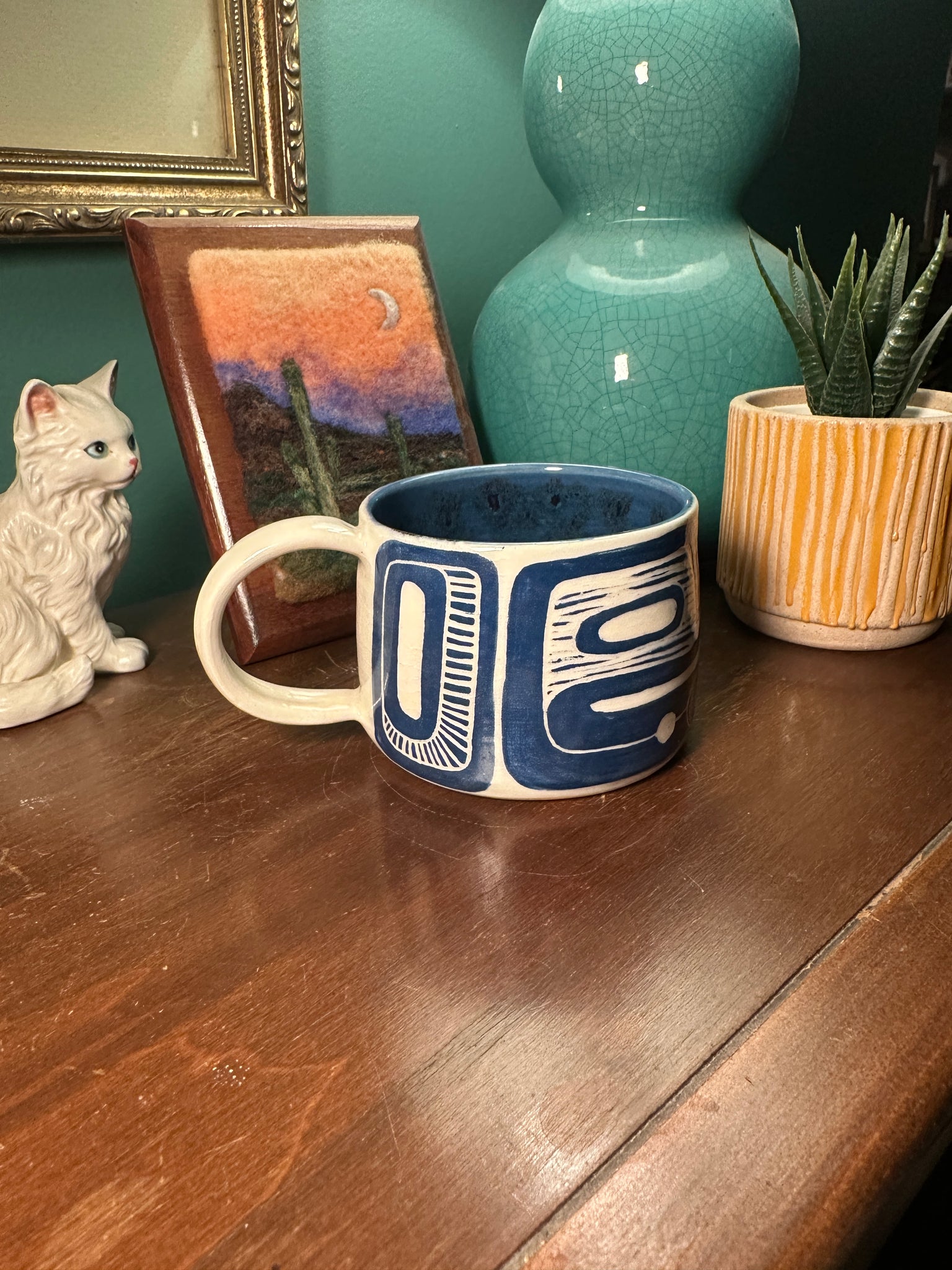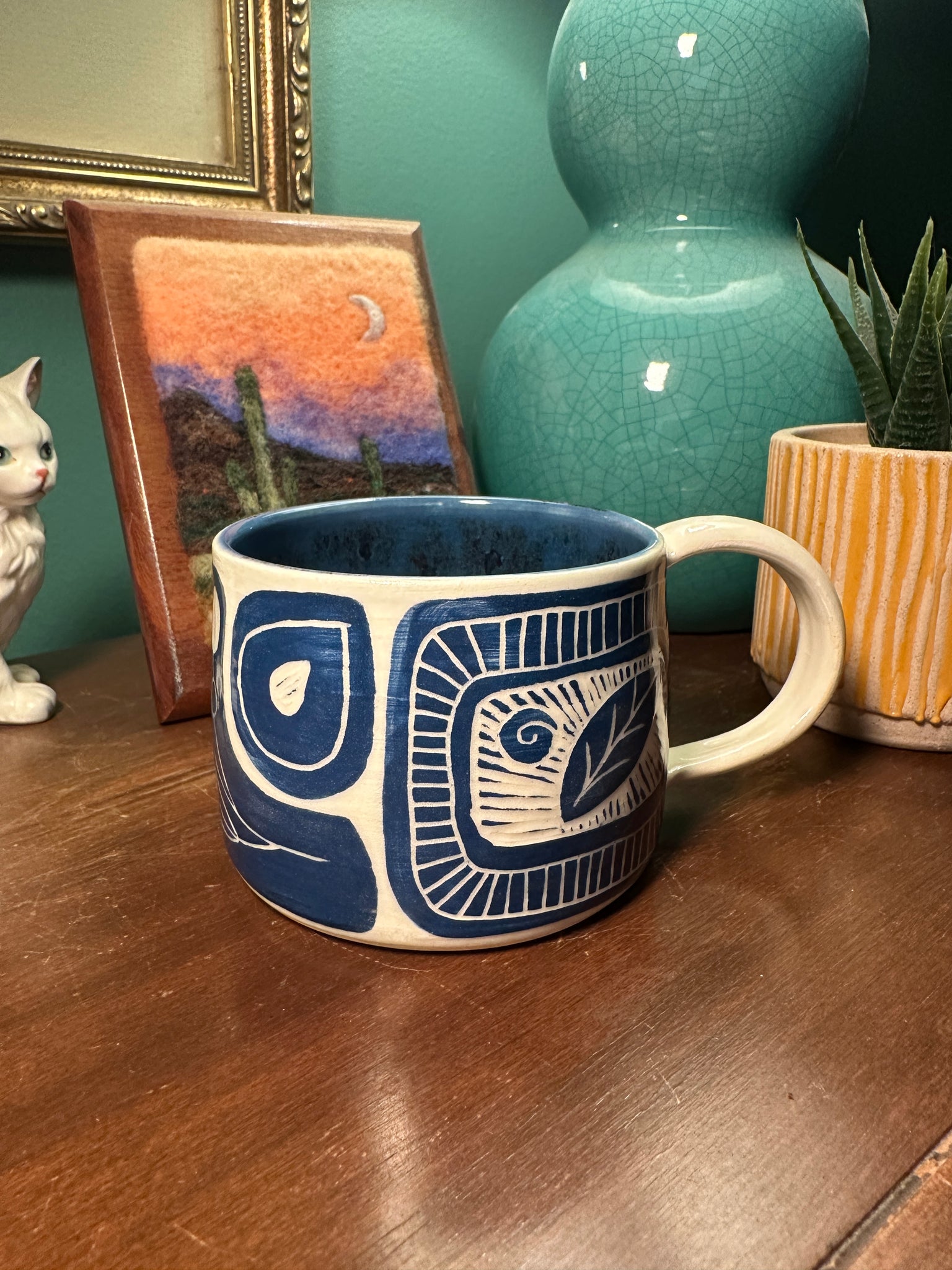 Get your hands on this unique Sgraffito mug! Handmade with love, each mug is a one-of-a-kind masterpiece. Enjoy your morning brew in style while supporting local artisans. Drink your tea or coffee in a truly special way - with a handcrafted mug that's full of character and charm. This one is a little on the small side so itβs perfect for espresso or for someone who always loves a fresh cup π